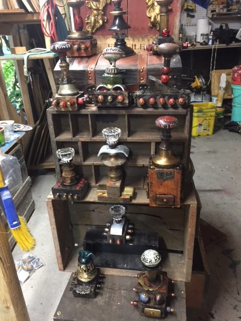 Everyone who has ever been to a 12 step program has heard that if you do not believe in a G(g)od(s), you can choose anything for your higher power – even a door knob. As I created these door knob sculptures, they became little soldiers for me, fighting against the effects of all trauma.