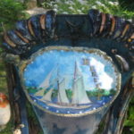 The oil painting of the Heritage Schooner was inspired by the needlepoint chair backs I have enjoyed viewing at the Searsport Marine Museum in Searsport, Maine.