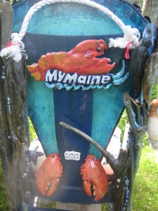 The pillow was a wool hooked rug pillow created by a Castine, Maine rug maker and the buoy came from my lobster people family in Stockton Springs.