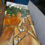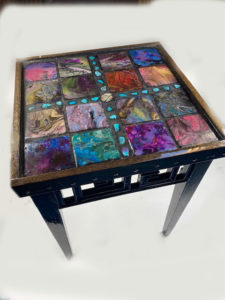 In collaboration with author , Kit Rocha, https://www.kitrocha.com/ these tables save the landfill and make your space interesting with visual engagement. Read More: Social Practice Art https://www.arttochangetheworld.org/barbara-bridges/