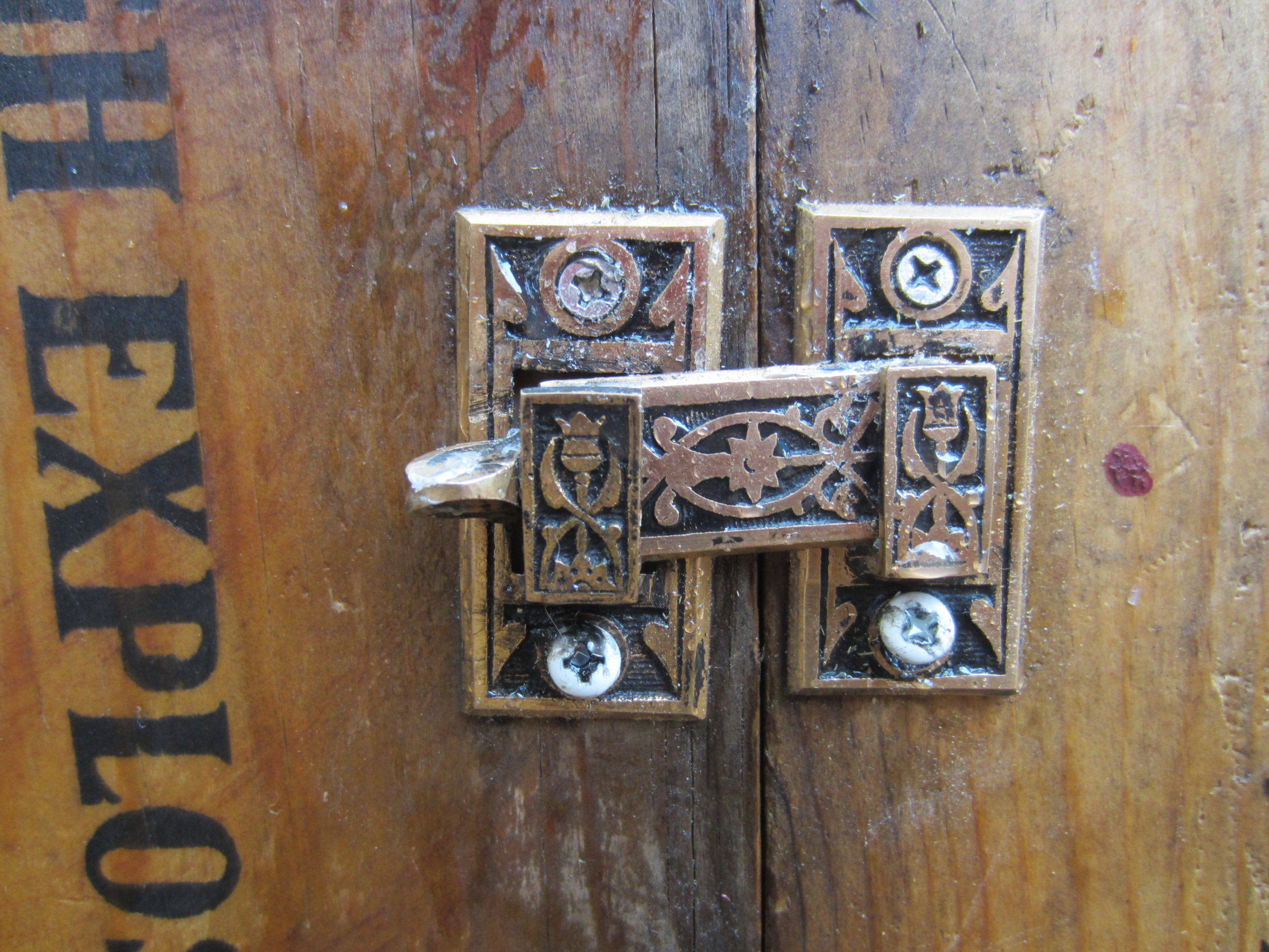 antique hinges, dynamite box, solid brass Kohler parts, Con Man Print