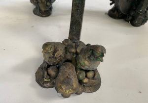 This interesting stand is the perfect base for an elegant sculpture. Distressed with silicone and sealed with matte epoxy to avoid shedding.