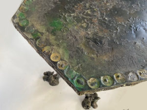 Mixed Media: Antique table, brass fittings and unique bird feet.