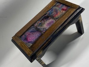 All furniture is sealed with a boat epoxy and then a matte polyurethane is my compromise to insure your object is indestructible and does not “shed”. …remains contained…what? Appearances : Found In Our Water WARM (Women’s Art Resources of Minnesota) , Minneapolis, Minnesota, Mill City Museum.